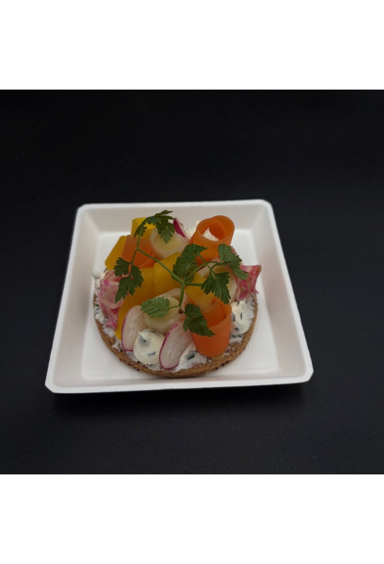 Ingrédients: farine de petit épeautre, quinoa, œuf, sel, poivre, ciboulette, crème, fromage, carotte, radis, betterave, poireau Conservation +3°c