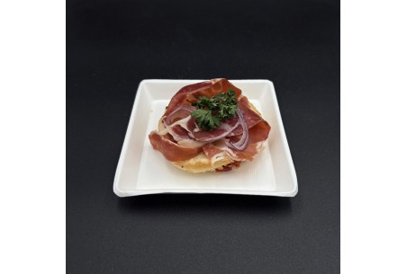 Entrée chaude: Focaccia au jambon cru