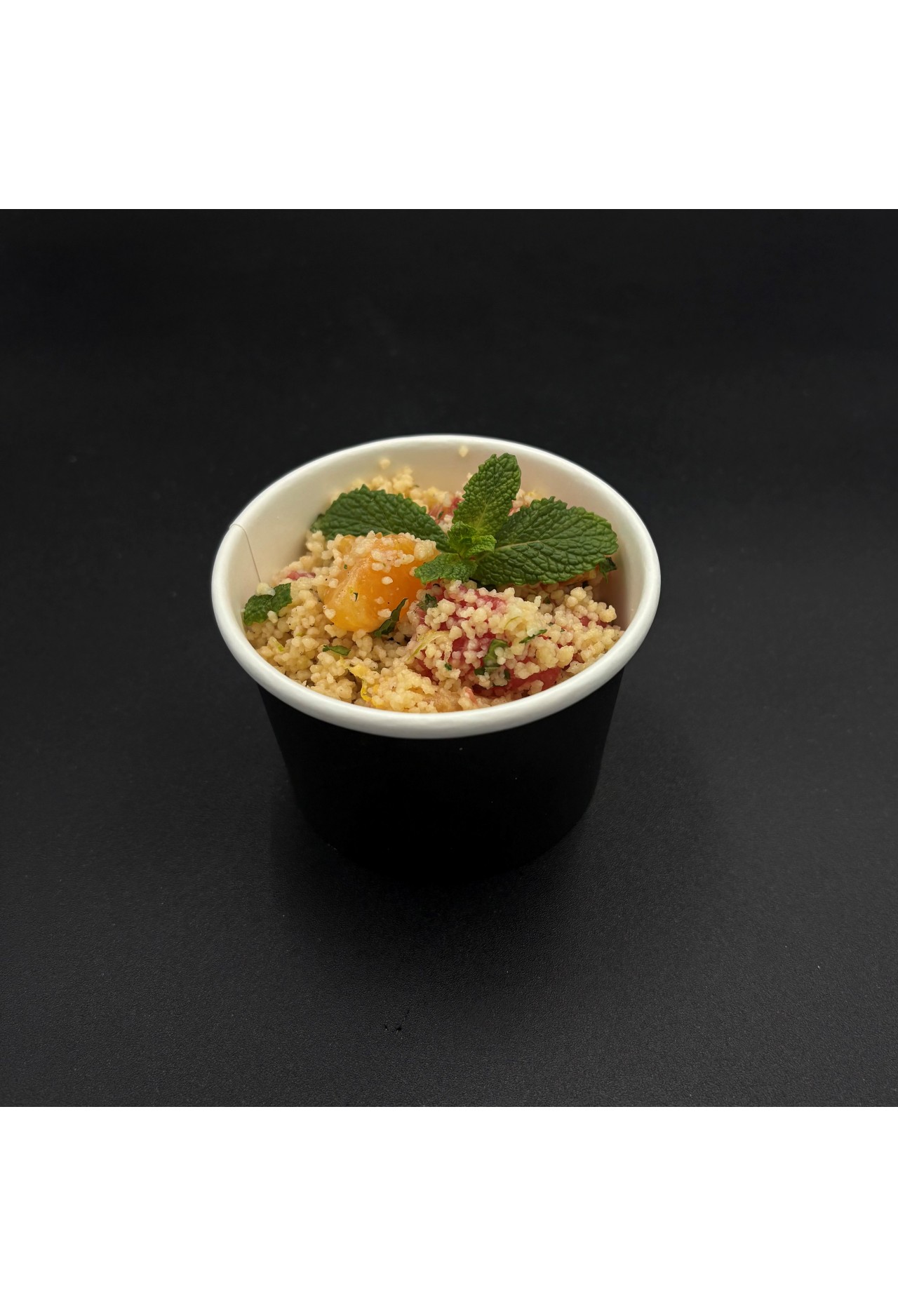 Ingrédients: semoule, menthe, coriandre, orange, pamplemousse, raisin