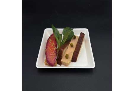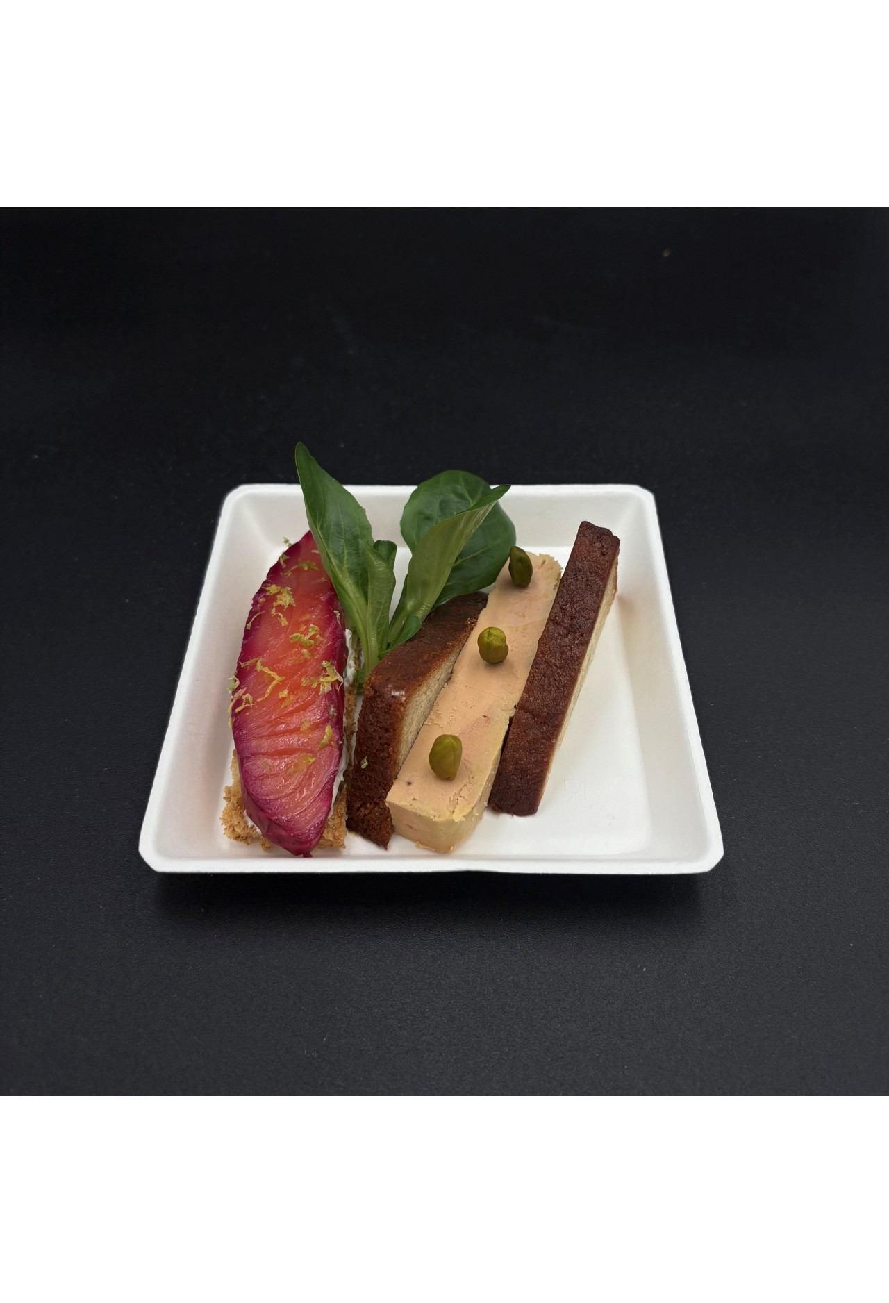 Duo de Foie gras de canard et Saumon betterave, pain céréales