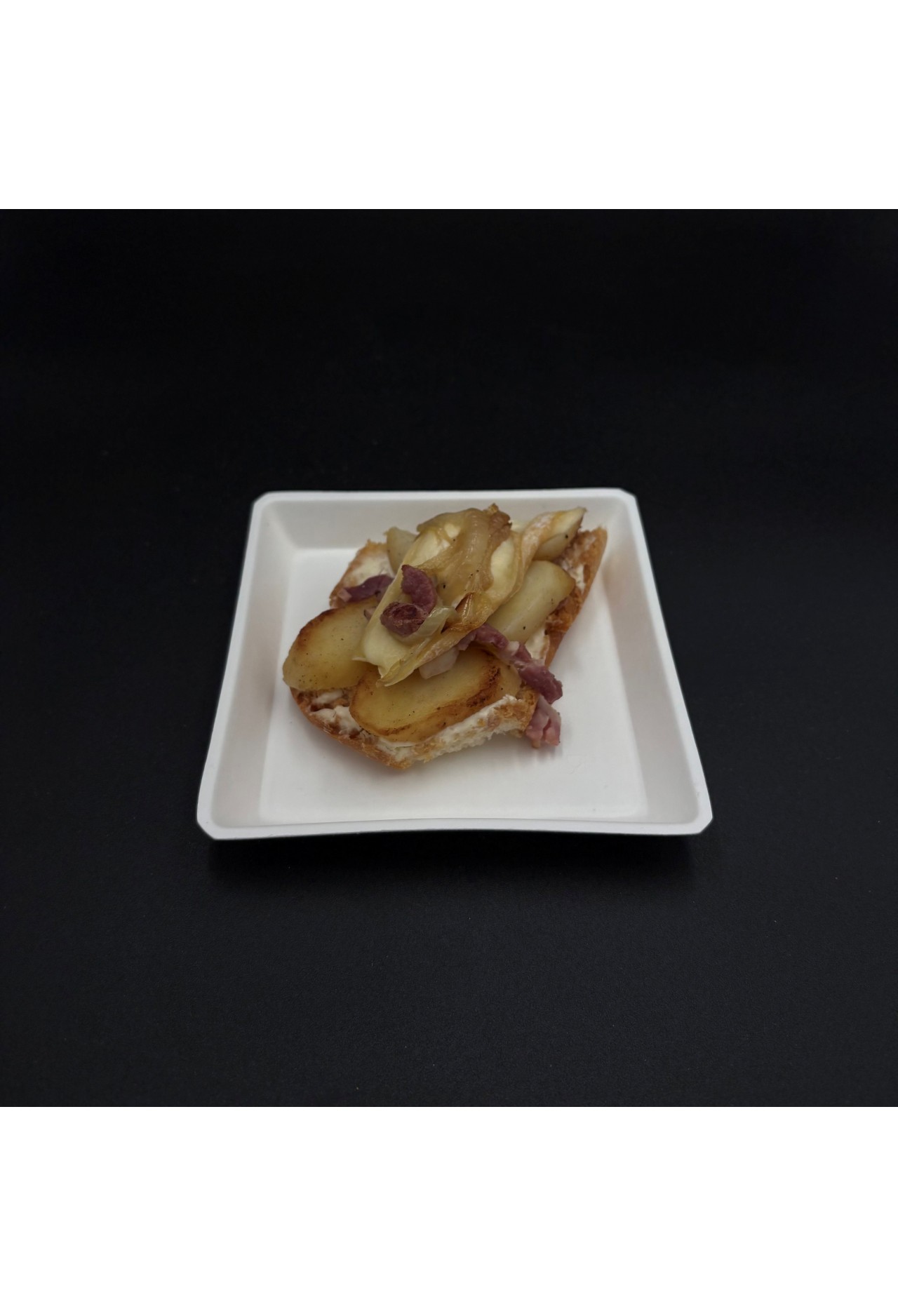 Ingrédients: farine, huile d'olive, semoule, farine de seigle, levure, sucre, sésame, soja, lait, porc, oignon, reblochon, crème