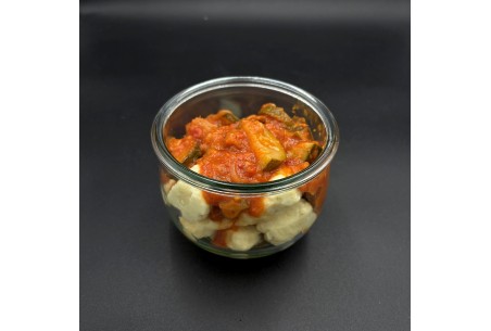 Ingrédients: pomme de terre, thym, herbes de Provence, farine, lait, œuf, sel, poivre, courgette, tomate, poivron, oignon, ail, huile d'olive, carotte